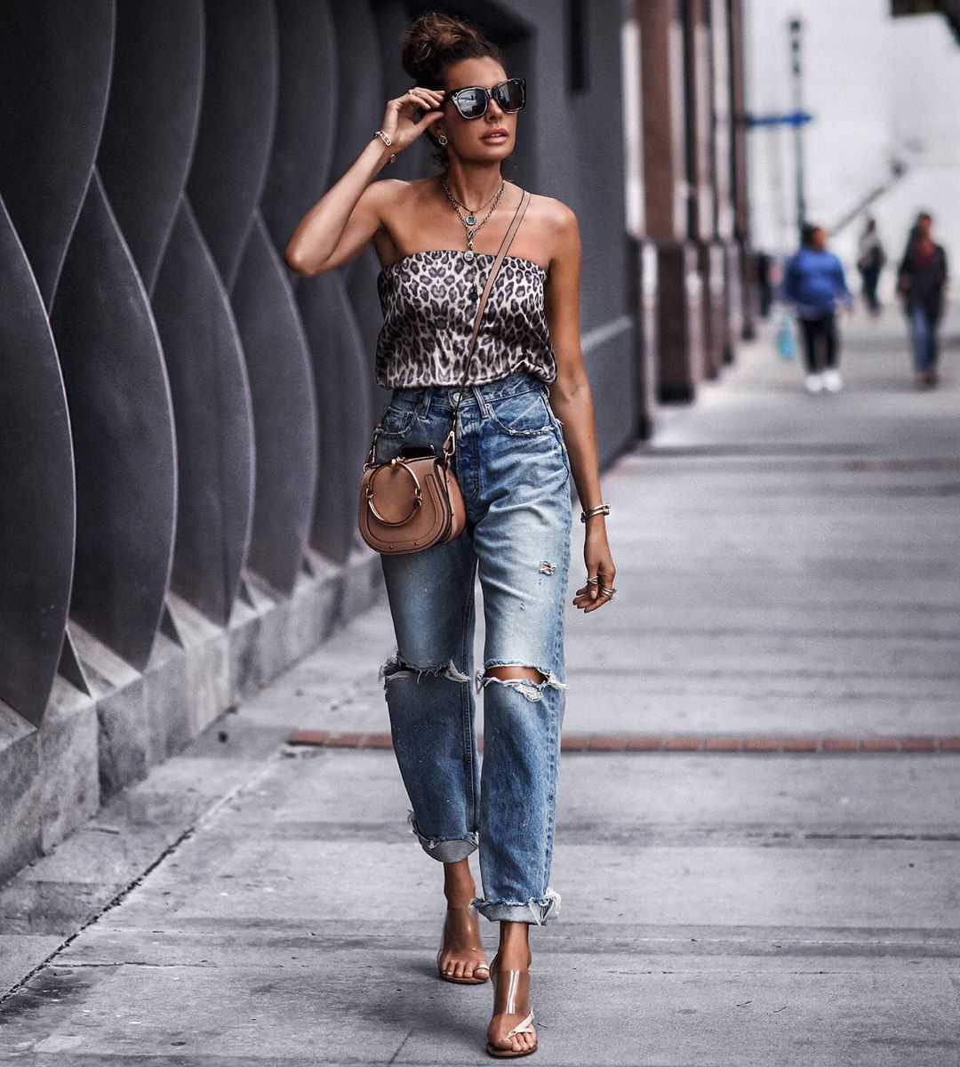 Уличная мода летом 2021 года приветствует в женской одежде такие элементы, как прорези, бретели, открытые плечи. Основные тенденции требуют, чтобы фасоны были ненавязчивыми и лаконичными. Если нравятся джинсы, для этого стиля понадобятся модели с дырками и потертостями.