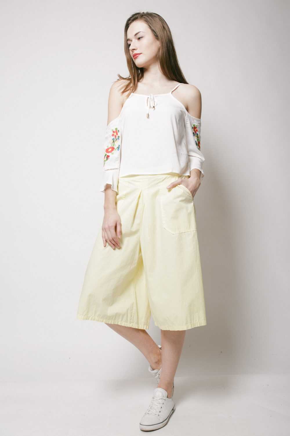 Под такие комплекты можно использовать как босоножки, так и кроссовки, в зависимости от настроения, которое модница хочет создать.