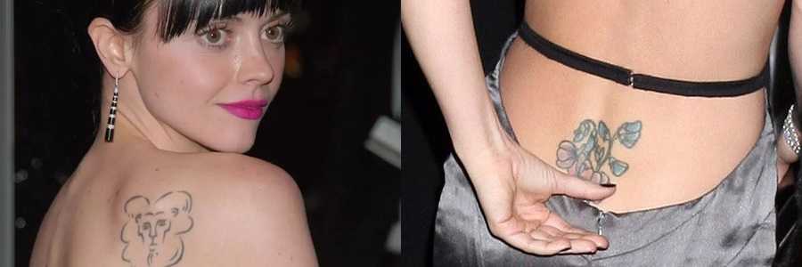 Своей первой наколкой Риччи обзавелась в 21 год, выбив на пояснице букет цветущего горошка. В 2003-ом на ее запястье появилась фея. Через год правую грудь звезды украсил летящий воробей (все желающие могут его оценить в фильме «Стон черной змеи»), а на левой щиколотке поселилась русалочка — напоминание о первой роли в кино.