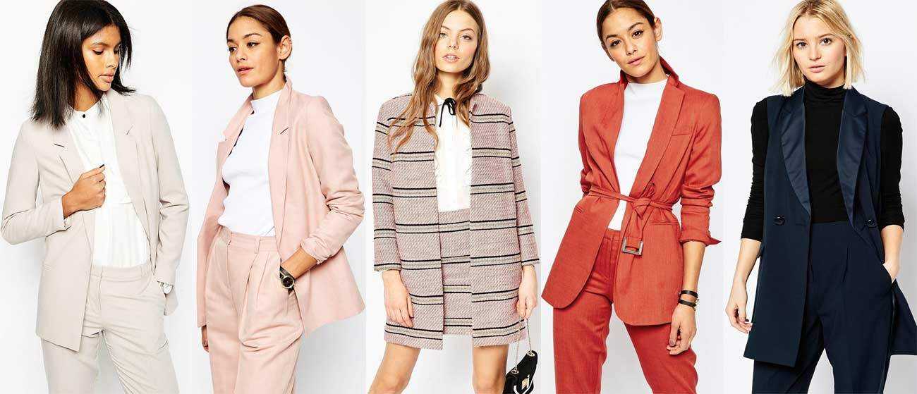 Сочетание пиджака с различными элементами – строгим платьем, юбкой или брюками.