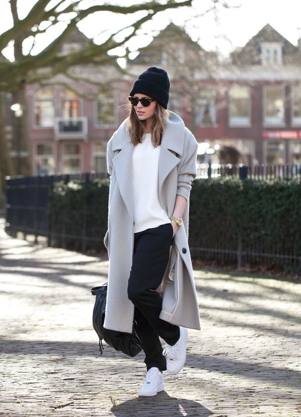 Для активных девушек подойдет спортивный стиль, для этого нужно выбрать свитер свободного кроя и крупной вязки, в качестве обуви подойдут легкие кеды, кроссовки или мокасины.