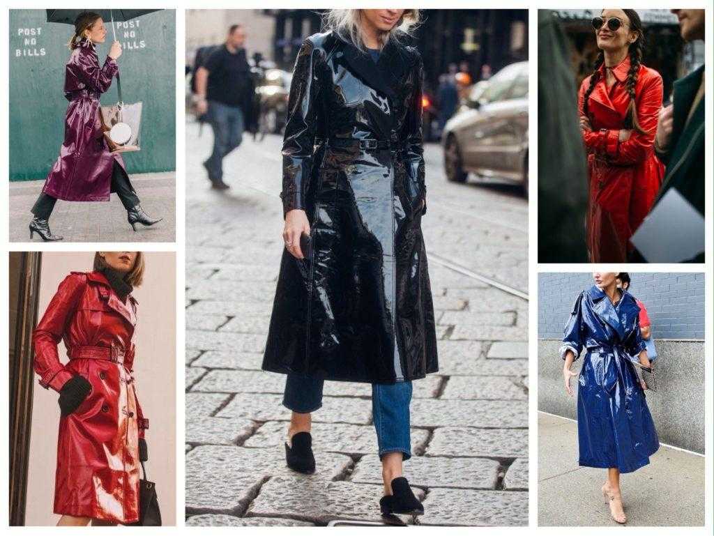 Виниловый женский плащ может иметь разную длину. Активные модницы выбирают короткие модели. Высоким девушкам подходит длинный тренч, как на фото.