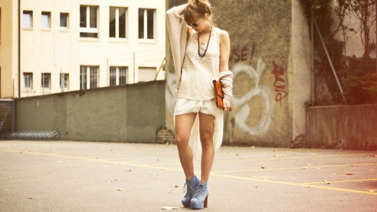 Обычно модницы для простых образов используют базовые кроссовки или кеды. Но если одеть ботильоны с открытым носком или туфли-лодочки получится ультрамодно.
