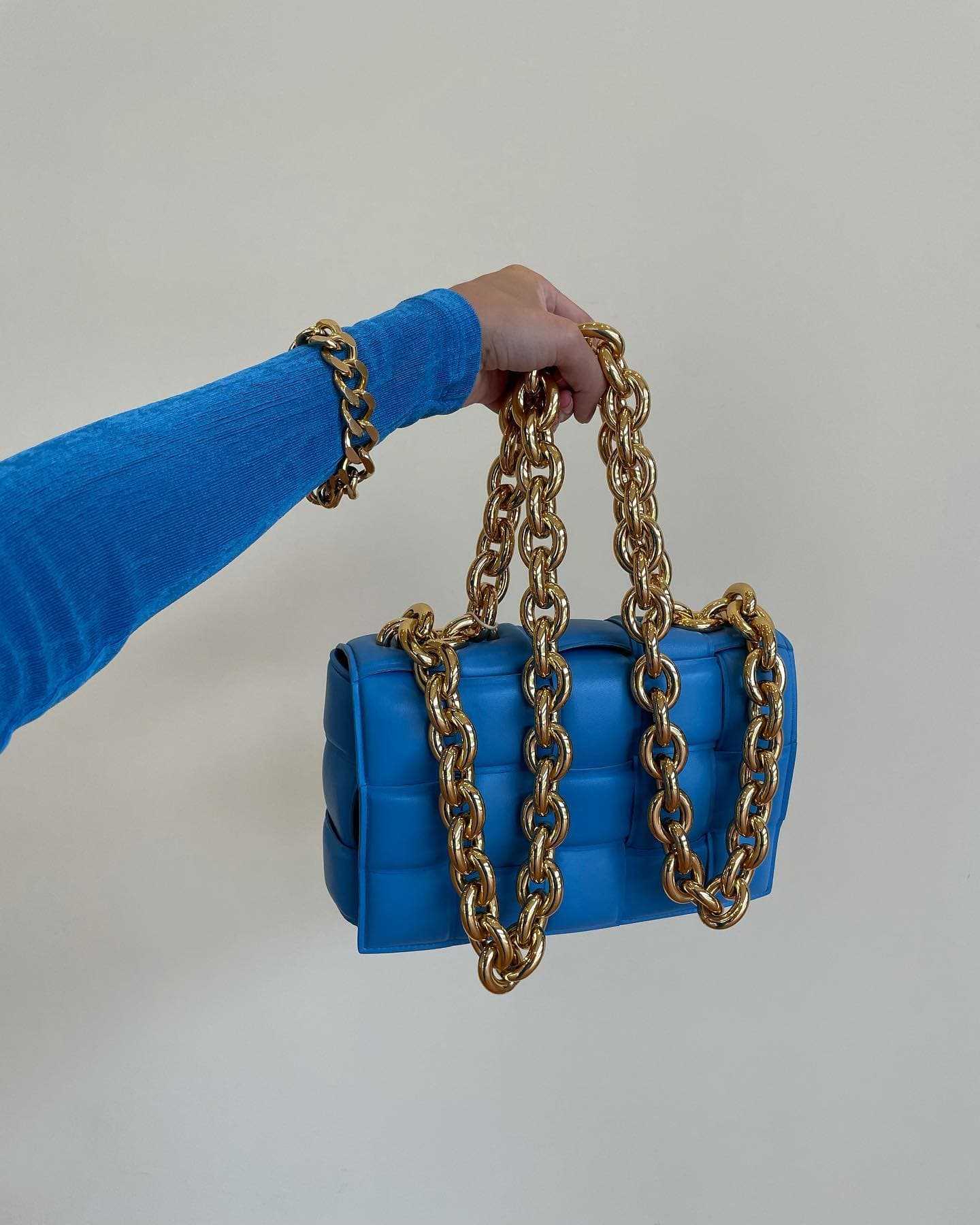 Один из самых ярких трендов 2022, который можно заметить на круглых сумках, моделях через плечо, клатчах, шоперах и чуть ли не авоськах — цепи. Важная поправка: металл должен быть тяжелым и прочным, а сама цепь — массивной и толстой. Только в этом случае достигается нужный эффект, а сам аксессуар выглядит актуально. Конечно, женские сумки через плечо по-прежнему могут быть с длинной и тонкой цепочкой, но если ты выбираешь сумку с акцентом на этом элементе, он обязан быть заметным.