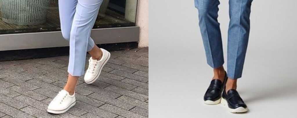 5. Обувь не обязательно должна быть классической. Возможны лоферы, спортивные варианты, но с условием, что они они простые, однотонные, невысокие.