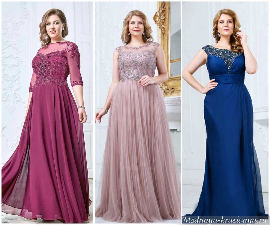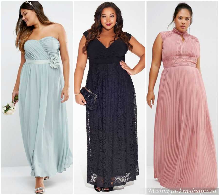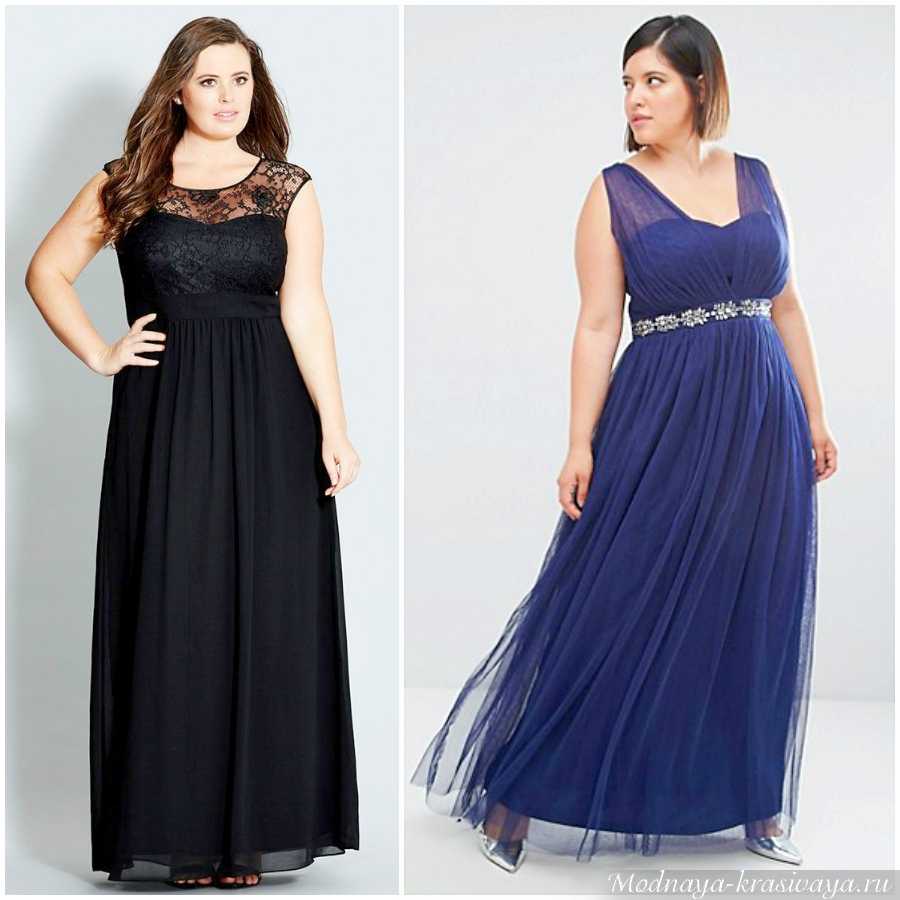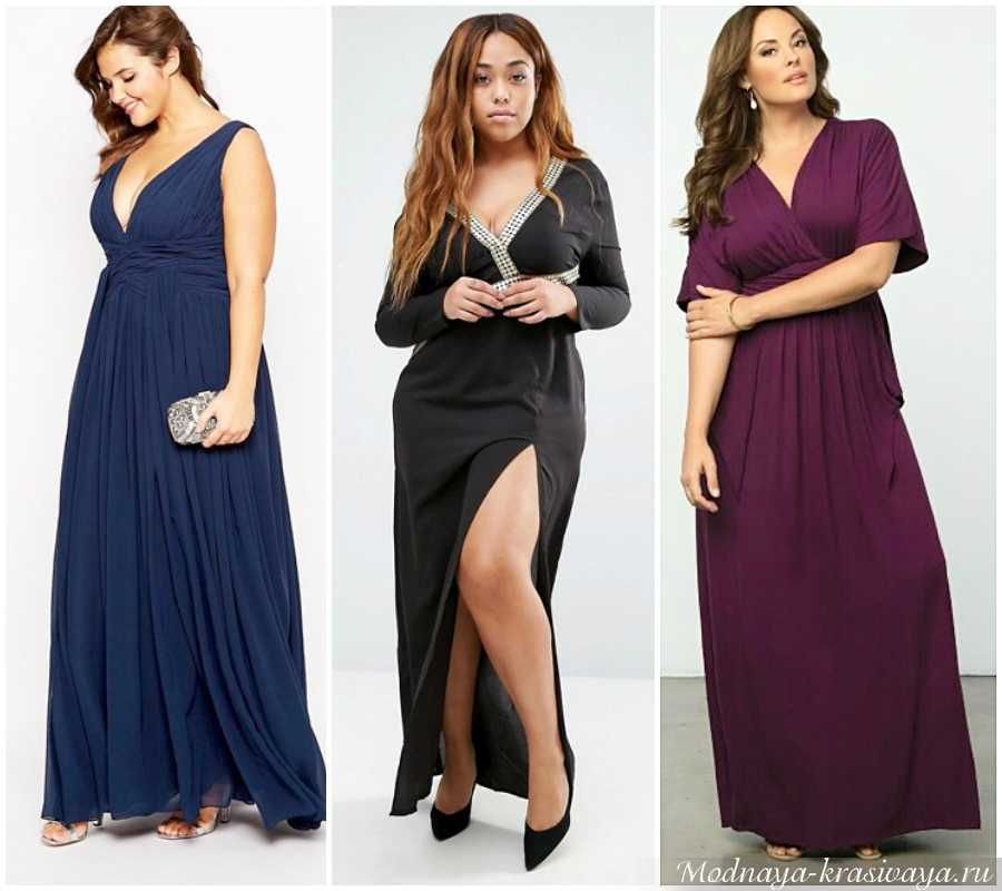 Вечерние наряды в максимальной длины позволяют женщинам выглядеть выше и стройнее. На фото представлено несколько нарядных вечерних платьев, идеально подходящих для полной фигуры.