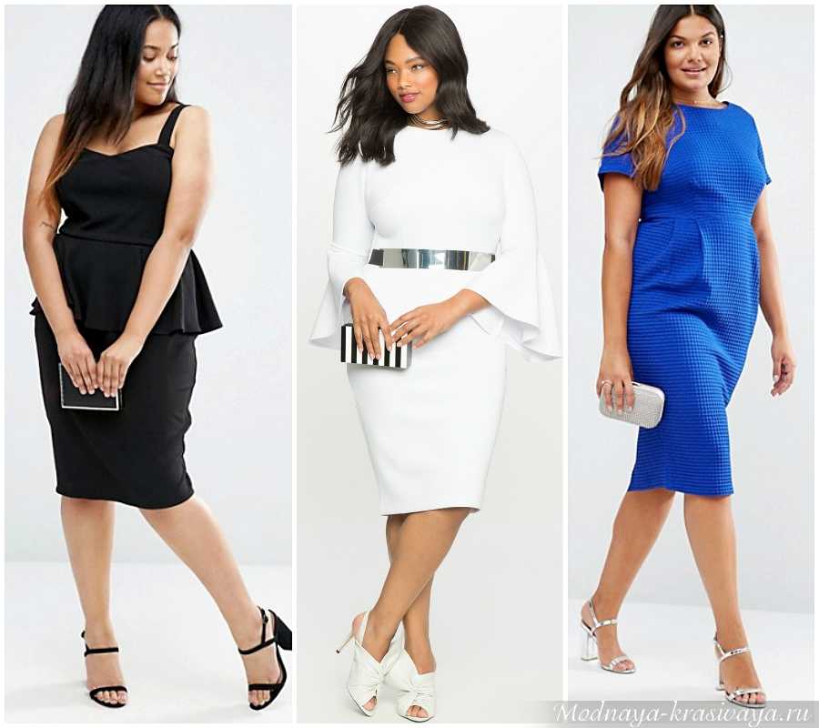 Модели, имеющие длину до середины икры, визуально укорачивают ноги. Самыми актуальными моделями остаются неизменное платье-футляр, очень популярное сегодня платье-туника, модели с запахом, баской и асимметричные фасоны. А также трапециевидные модели, платье-рубашка и другие примеры.