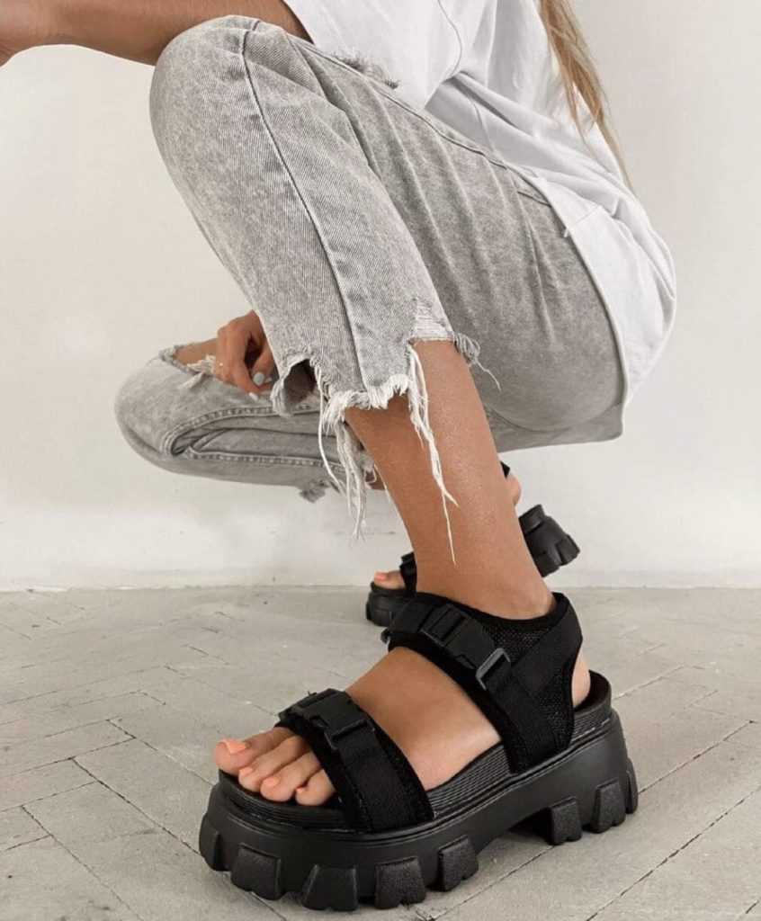 Главное разобраться с посылом, который вы хотите нести. Босоножки на платформе могут сделать из вас панка, авангардную девушку или современную леди, которая выбирает комфорт в городских жарких буднях. Тренды в цвете — это белая и бежевая джутовая подошва, но вариантов может быть миллион.