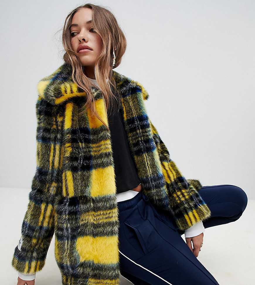Искусственные меха полушубков порадовали своей фактурой и буйством красок. Одним из ярких модных хитов стала модель, внешне смахивающая на укороченную шинель за счет кроя. Строгость фасона растворяется благодаря комбинации ярко-желтого и коричневого искусственных мехов, из которых сшит полушубок.