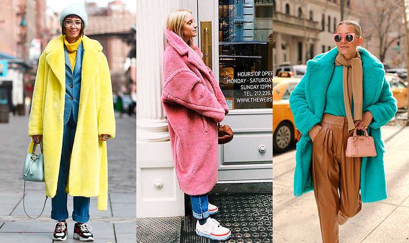 Выбирайте, отталкиваясь от основных цветов вашего гардероба. Нейтральные, такие как: бежевый, черный, серый — подойдут практически ко всему, с ними меньше забот и их не нужно доигрывать. Яркие цвета более требовательны, тут нужно продумать образ и возможно закоординировать цвет шубы с другими деталями.