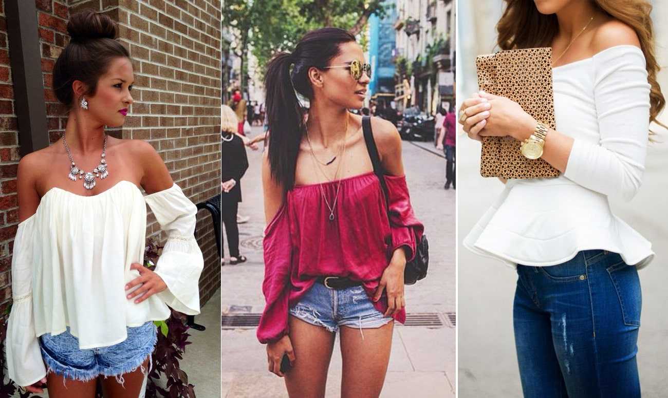 Блуза, топ или платье с открытыми плечами можно назвать не только самым соблазнительным модным нарядом в этом году, но и наиболее универсальным. К радости модниц, такая одежда подходит женщинам любого телосложения. В ней соблазнительно выглядят и стройняшки, и пышки. Девушкам с аппетитными формами не стоит отказываться от модного наряда. Более того, такая одежда может сделать их изящнее и визуально удлинить шею, а также скрыть полноту рук.