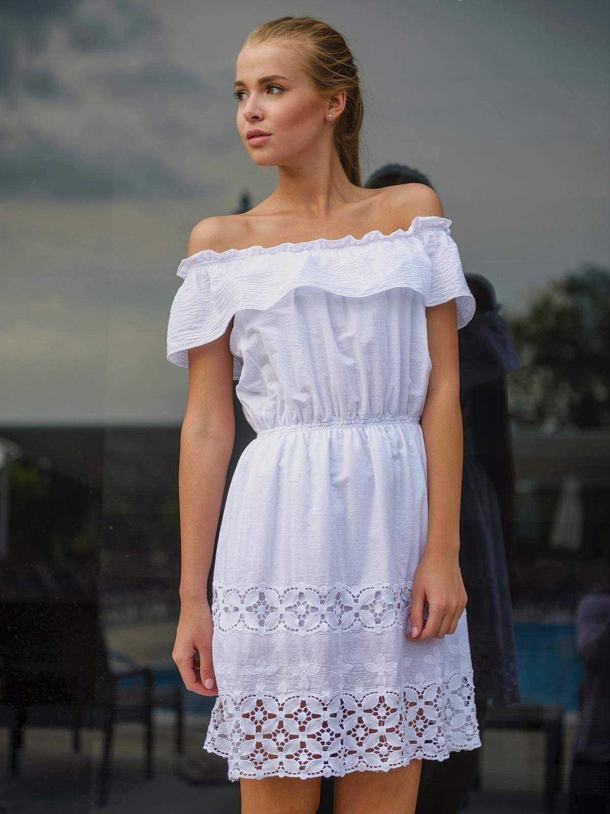 Летнее платье с открытыми плечами – это роскошный вариант «на выход» и на каждый день. Чтобы вам было комфортно в жаркую погоду, выбирайте ажурные модели из натурального хлопка.
