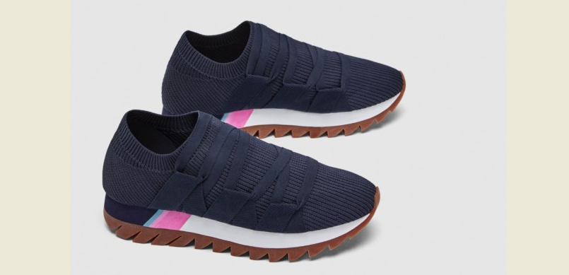 Казалось бы, обычные кроссовки с темным верхом. Но они отличаются от подобных моделей, представленных в прошлых сезонах, крупной шнуровкой и тем, что на подошве есть яркий акцент — небольшой, но интересный.