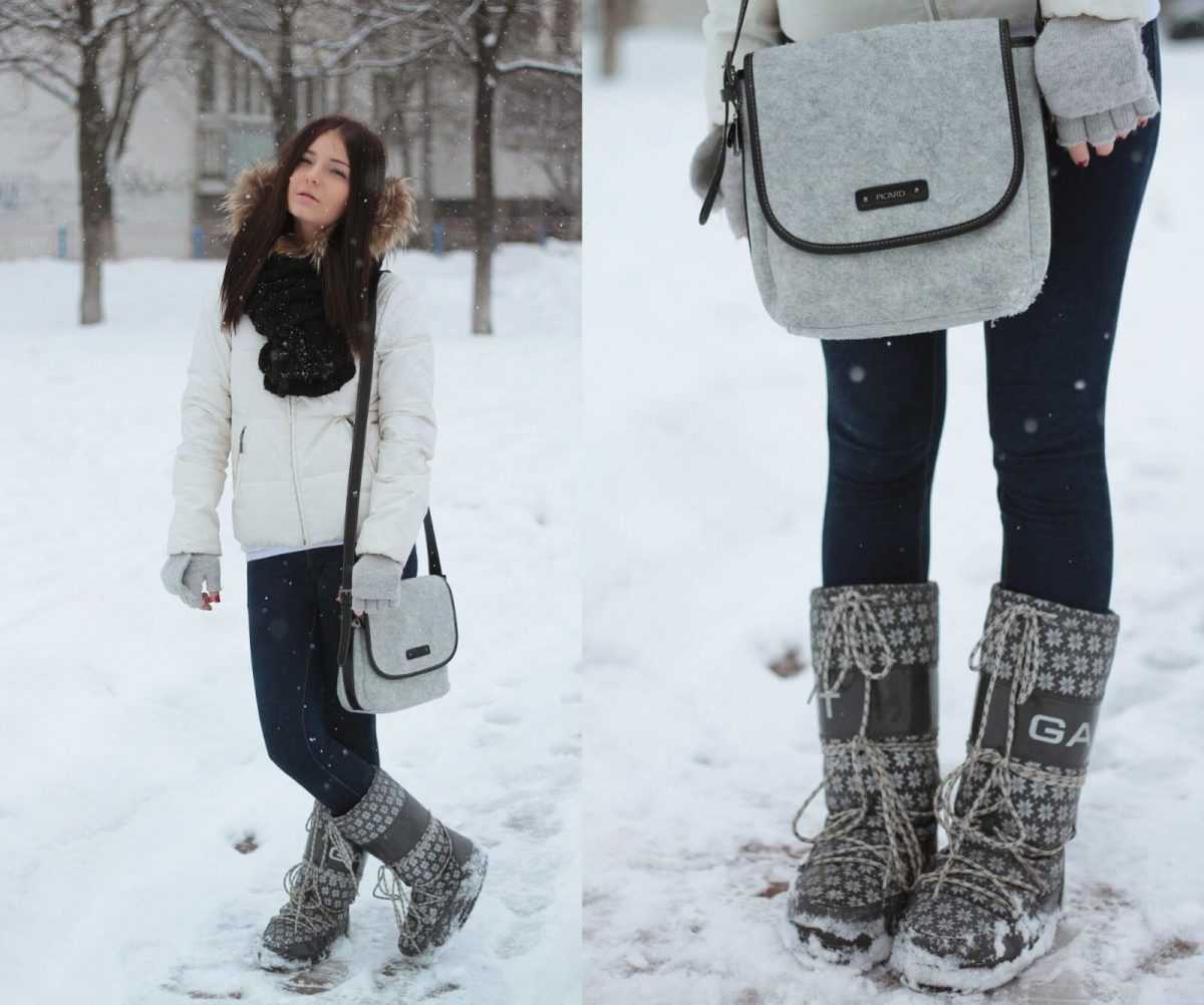 Удобные дутики придают зимнему образу эффектность. Такая обувь вторит трендовым идеям удобного и оригинального образа, популярного в 2019 – 2020 году.