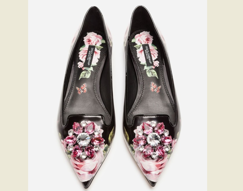 Балетки также яркие, но с узким носом, в отличие от моды прошлых сезонов. Принт должен повторяться и на стельке.