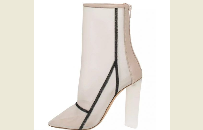 Широкая высокая шпилька, почти прозрачная, оригинальный верх в бежевых и молочных тонах — такие сапоги отлично подходят к брюкам-палаццо, кюлотам, юбкам в стиле миди и к модным в этом сезоне пальто-халатам.