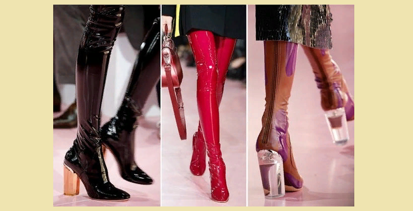 Лаковые сапоги-чулки со стеклянными каблуками — тренд этого сезона. Зимой тоже можно быть яркой, модной и выглядеть необычно.