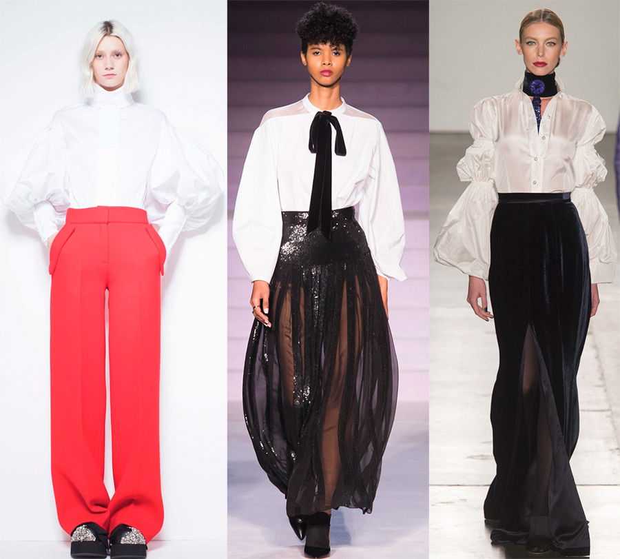 Используя стили прошлых эпох, во многих моделях дизайнеры обратили наибольшее внимание на крой рукава, придав ему огромные объемы. Есть рукава, состоящие из двух частей – верхней и нижней, в которых одна из них принимает объемную форму, вторая – более узкую, есть гофрированные рукава