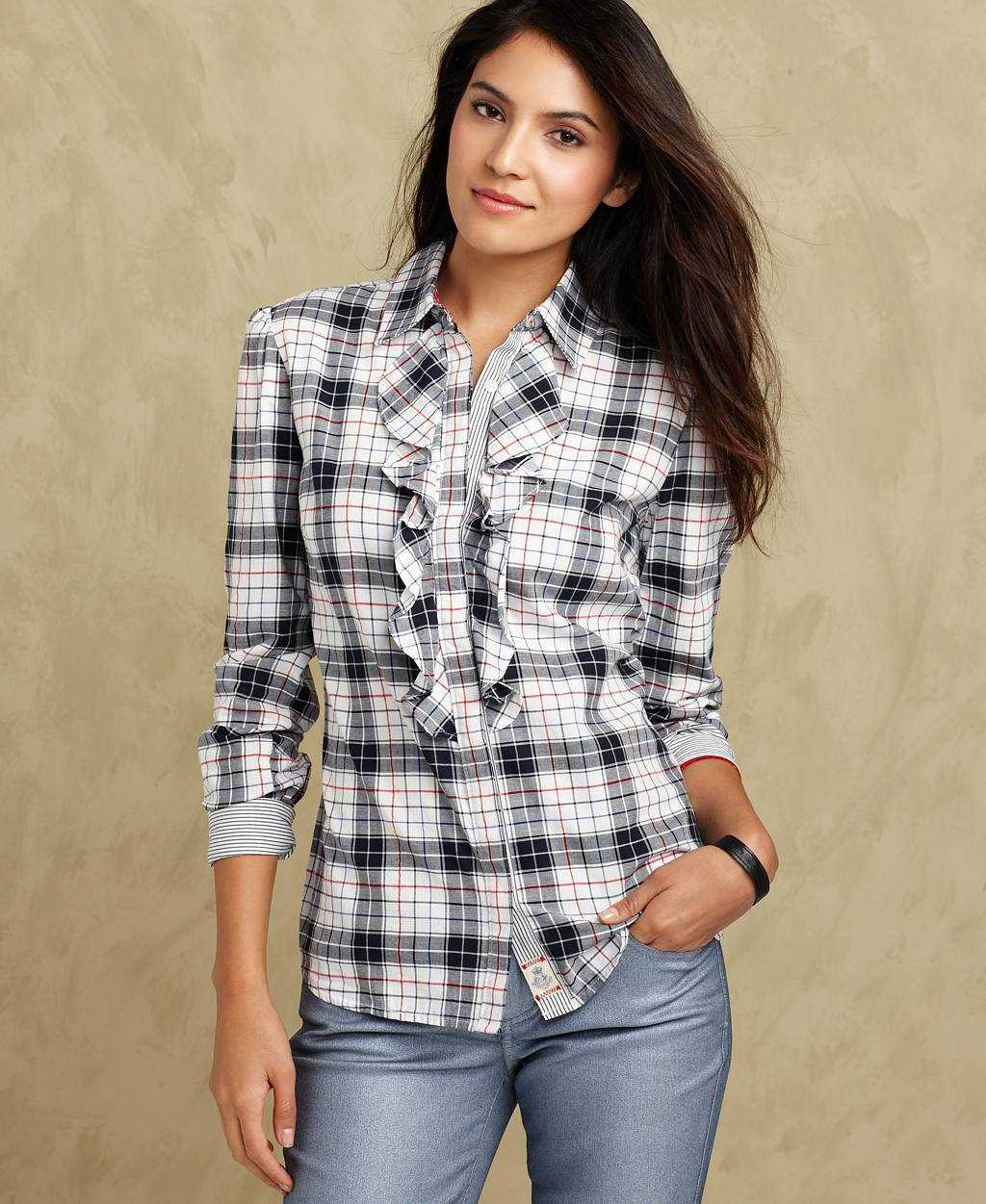 Однако, клетчатая рубашка ставит перед модницами некоторые ограничения. Прежде чем надевать рубашку со столь хитрой расцветкой нужно задуматься о сочетании этой вещи с другими предметами гардероба.