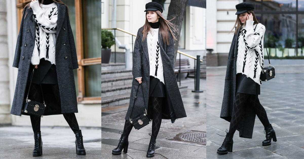 С такой юбкой есть риск создать скучный, учительский образ, поэтому избегайте водолазок в тон юбке, бежевых и коричневых колгот, беретов и прямых пальто с поясом на талии. Лучшая обувь – фактурные ботильоны на толстой подошве и каблуке, изящные ботильоны с острым носом, белые кроссовки.