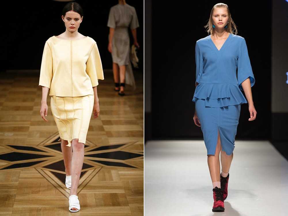 Юбка-солнце. Любимое многими дамами изделие самого простого кроя в этом сезоне покинуло свою традиционную категорию «модные фасоны длинных юбок» – дизайнеры предложили носить «солнце» в укороченном варианте или даже длиной до колена. В качестве тканей для модели по-прежнему рекомендованы тонкие воздушные материалы, также можно добавить образу экстравагантности, выбрав изделия с воланами, рюшами или необычными принтами.