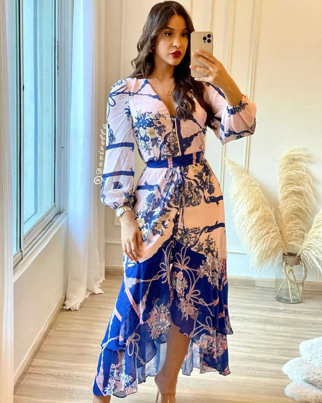Что касается рисунков, то сегодня на пике популярности комбинация тканей разных цветов. Модели на сезонных показах пестрят цветочными и абстрактными принтами, которые выгодно подчеркивают фасон платья.