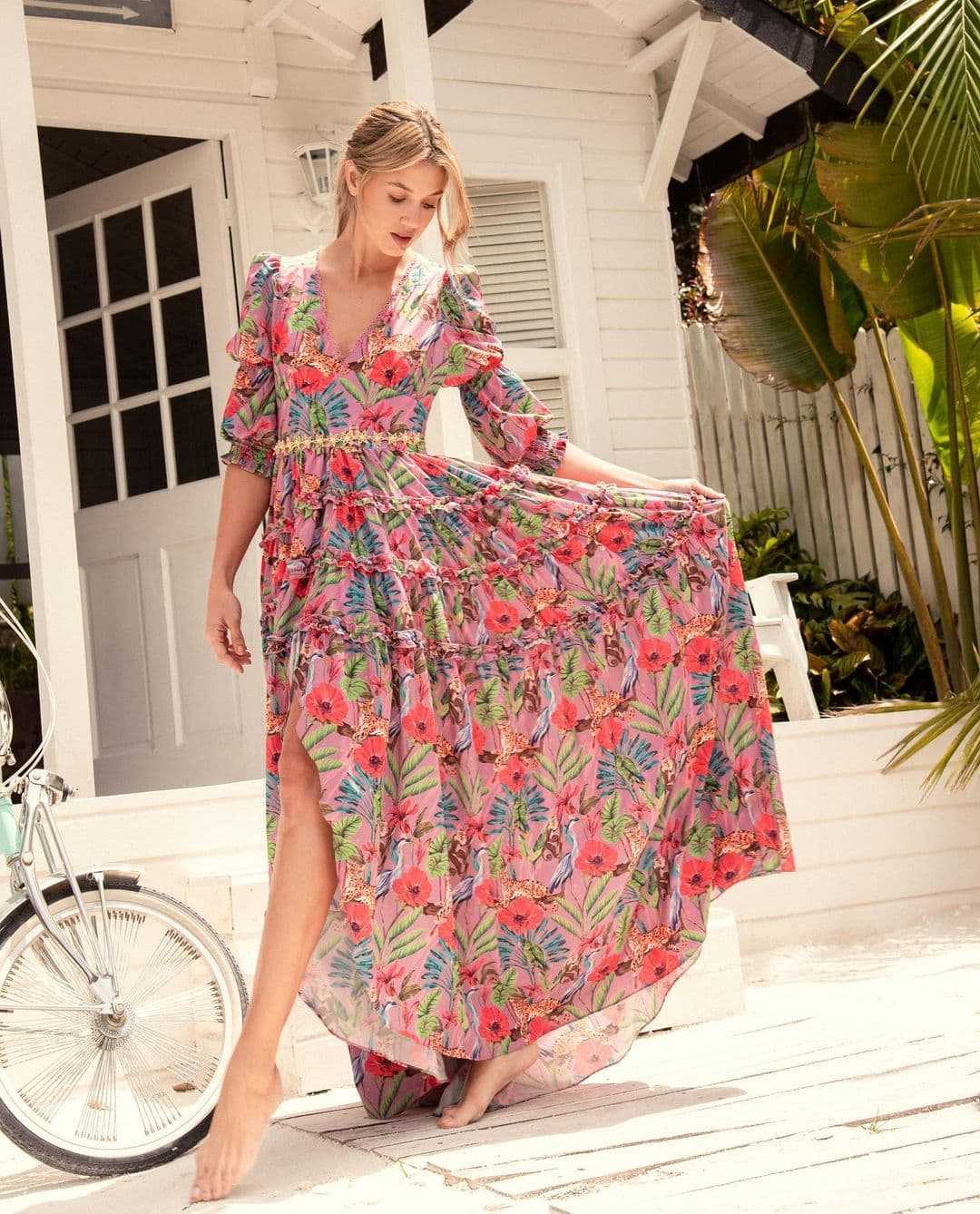 пляжное платье свободного кроя с воланами – асимметричная отделка одежды для отдыха позволяет разнообразить фасоны, придать элементы озорства.
