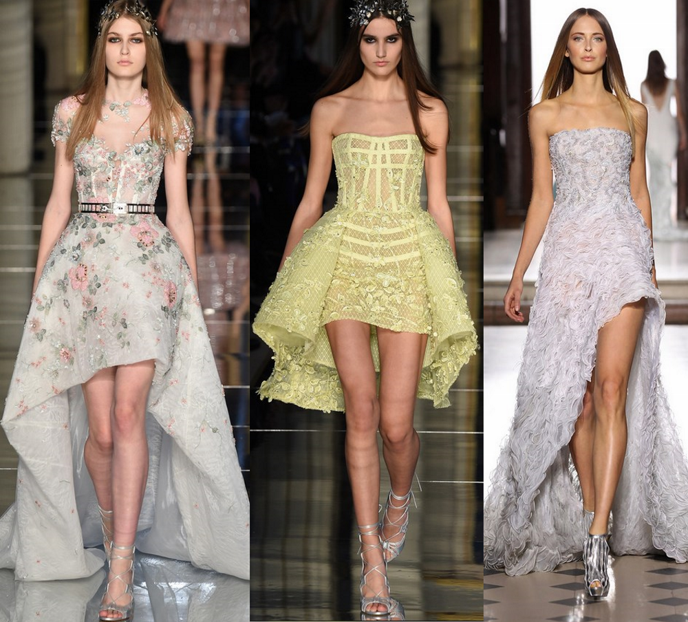 Среди фасонов-триумфаторов нельзя не отметить изумительно женственные платья годе и русалка, без которых не обошлась практически не одна свежая коллекция. Несмотря на то, что трендовость черного цвета не вызывает никаких сомнений, на показах можно заметить разнообразные колористические решения – множество вечерних нарядов выполнены в мягких тонах красного, глубокого зеленого и мягкой пастели голубого и серого цвета.