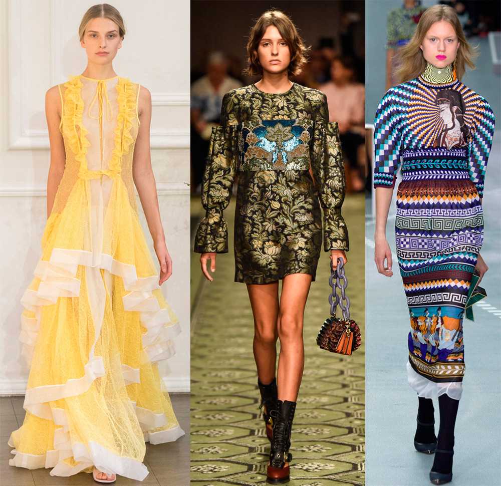 Изысканный крой актуальных вечерних нарядов дизайнеры часто подчеркивают геометрическими мотивами и флористическими узорами, которые не просто оттеняют роскошные ткани, а сообщают каждой вещи гармоничность дуэта женского тела и фантазии дизайнеров. Можно смело сказать, что новый модный год многогранен, как драгоценный бриллиант. Для того чтобы вы не запутались во всем представленном великолепии вечерних нарядов, давайте поговорим о самых выпуклых и актуальных трендах несколько подробнее.