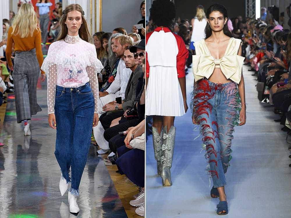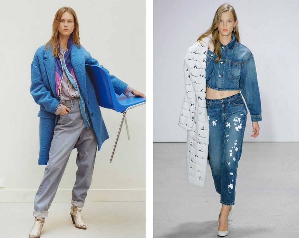 На подиумах многие мировые дизайнеры представили массу самых разнообразных моделей джинсов, начиная от классических моделей skinny до самых ультрамодных клеш-маллет. Также в моде джинсы стиля гранж, которые помогут создать стильный образ в этом году. Например, если пересмотреть джинсы 2018 года, которые диктуют модные тенденции и фото, то видно, что актуальным остается и прямой покрой и клеш, модели бойфренды и облегающие, оверсайз и комбинезоны, а также джинсы с завышенной талией.
