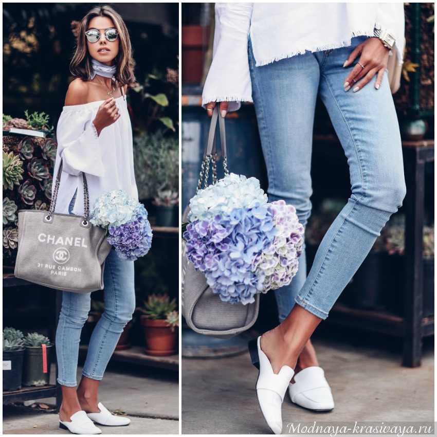 - Белые джинсы. На лето модный, красивый и интересный выбор. Особенно предпочтителен обладательницам длинных стройных ног.