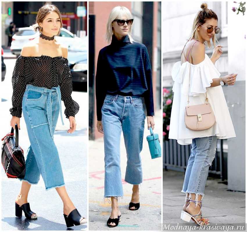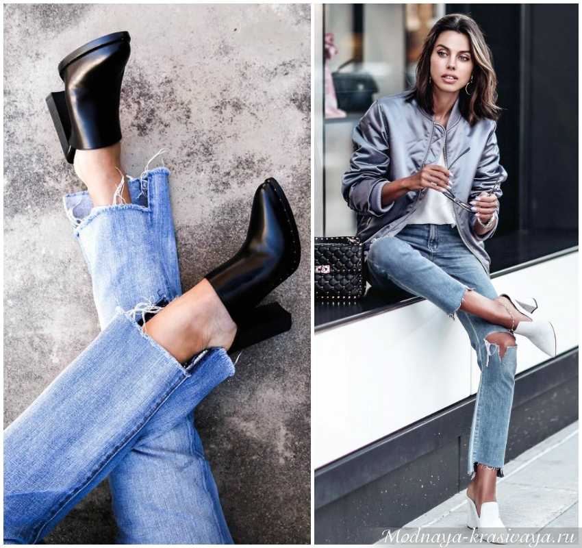 Первенство заняли укороченные женские модели с подворотами или срезанным краем. Для получения ультрамодного лука можно просто обрезать джинсы в стиле бойфренд по щиколотку или выше.