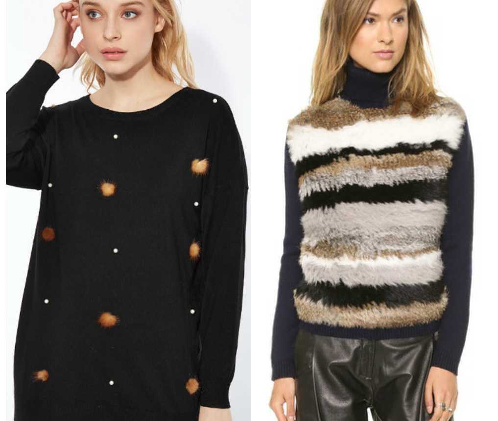 Стоит присмотреться к необычным свитерам с меховыми вставками. Конечно же, к меху сейчас неоднозначное отношение. Поэтому все чаще дизайнеры используют искусственный материал, который в данном случае будет оптимальным решением. Что касается цвета, то он может быть в тон или же контрастным