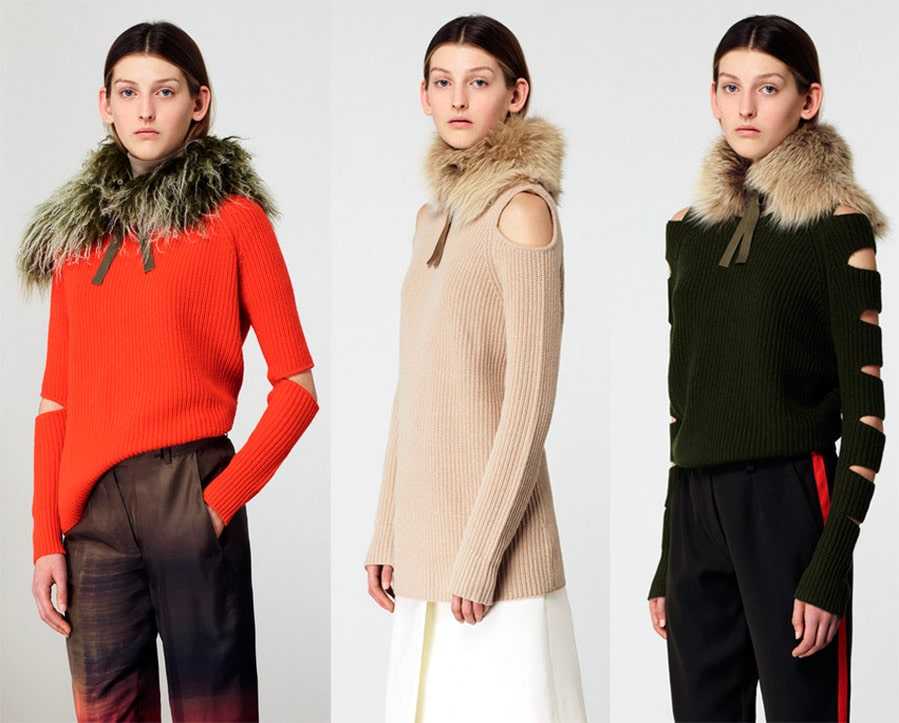 В коллекциях последних лет можно встретить много вещей, декорированных мехом, в том числе свитера с меховым воротником или манжетами. В этом сезоне дизайнеры рискнули пойти еще дальше, предлагая изделия, полностью связанные из меховых полос. Такое изделие потребует особого ухода и внимания при составлении образа, но это с лихвой окупается его нетривиальным видом.