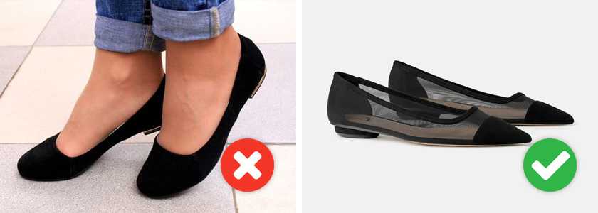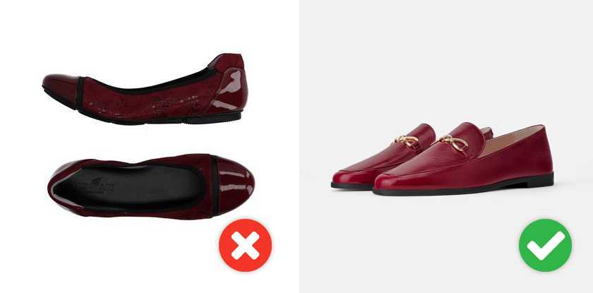 Наши прекрасные дамы очень любят балетки с круглым носом, чаще всего без какого-либо каблука. Понимаю, что это удобно, но, как ни печально, это не модно. Стоит присмотреться к балеткам с острым носком или к более современным моделям (лоферам, монкам).