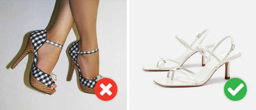 Потеряла свою актуальность обувь на высокой танкетке и со скрытой платформой, заменяем ее устойчивым каблуком. Отдаем предпочтение лаконичным лодочкам.