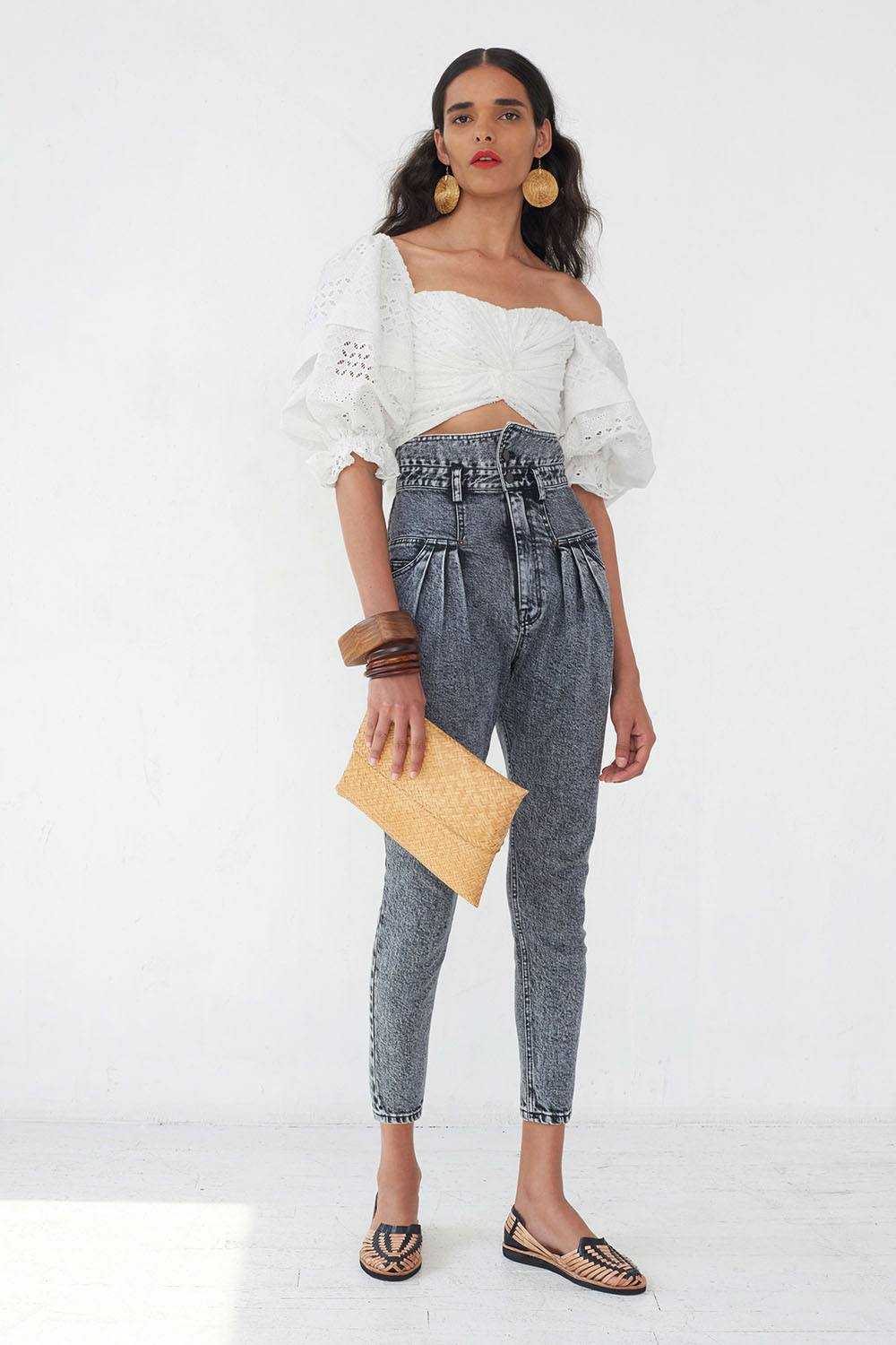 Это наиболее модный тренд текущего и наступающего сезонов. Такие джинсы прекрасно скрывают маленькие нюансы фигуры, при этом делают ее значительно стройнее. Среди представленных моделей есть большое разнообразие для выбора: мом-джинсы, 7/8, прямые. Такие брюки хорошо смотрятся в сочетании с коротким топом или заправленной блузкой.