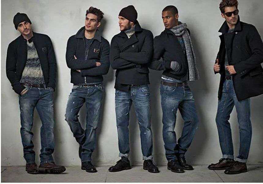 | Спорт-кэжуал | Сочетание спортивного и повседневного стиля, имеет наибольшую популярность среди молодых людей. | Все виды джинсовых брюк. |
