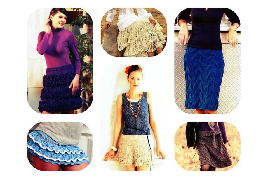 Вязаные варианты рекомендованы даже для походов на пляж – на лето выбирайте яркие модели мини-длины легкой вязки. Очень женственно и игриво смотрятся короткие юбки в ажурном исполнении, в фасонах трапеция, солнце или колокольчик. Дополнить милый образ дизайнеры предлагают разнообразными рюшами, воланами и кисточками.