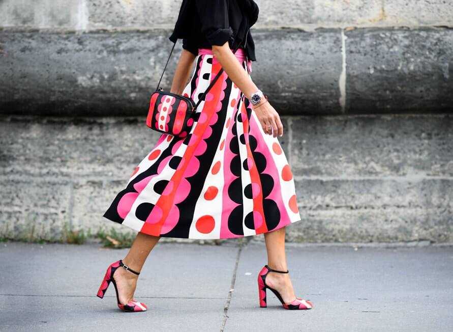 Лучше переключить внимание на стройные ноги – с помощью юбки сложного кроя или необычной расцветки, а также с помощью красивой обуви. Идеальное решение – наряд с темным верхом и светлым низом
