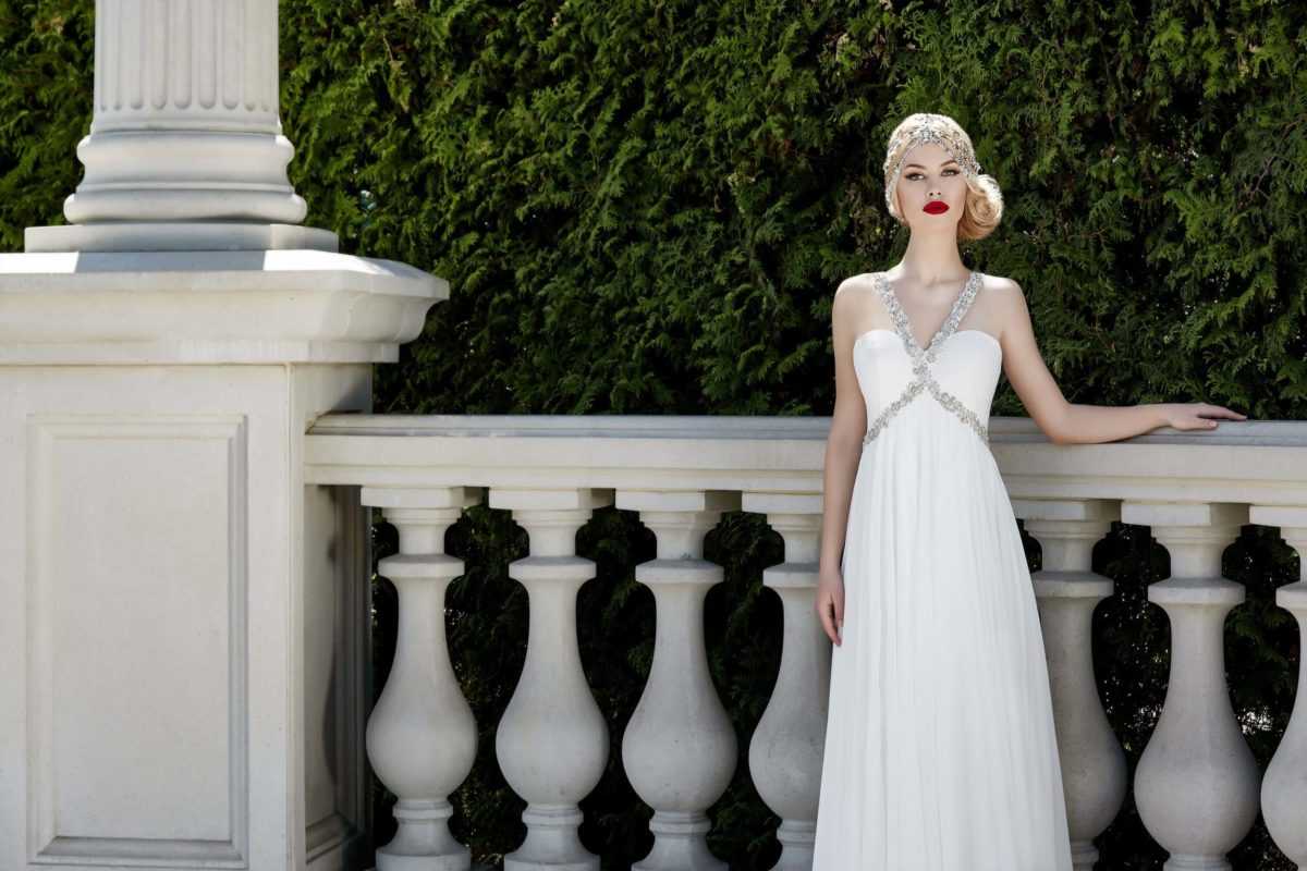 Греческий стиль можно охарактеризовать как женственный, изысканный, романтичный. Такие платья подходят всем девушкам. Ведь они подчеркивают хрупкость и наделяют образ особым шармом, орт которого сложно отвести взгляд. Греческие платья в греческом стиле к тому же практичны. Они удобны в носке, так как не сковывают движения. Идеальны для фотоссесий на природе. Шьются они из легких, струящихся тканей. Зачастую дополняются оборками, драпировкой. В качестве украшений могут использоваться крупные броши с натуральными камнями, стразами. Линия талии в таких моделях может варьироваться. Она бывает завышенной, находится четко на талии или же быть чуть-чуть выше. Завышенная талия в тандеме с длиной платья до пола позволяют зрительно вытянуть фигуру, сделать ее более стройнее. Данный вариант подойдет для невысоких невест. Такие платья могут быть с широкой проймой на одно плечо, дополняться чокером, с драпированными бретелями или же быть без бретелей, с драпировкой «крест на крест». Не менее нежно и загадочно смотрятся модели, дополненные рукавами с длиной ¾. Причем рукава могут быть выполнены совершенно из другого материала, например, из модного в этом сезоне кружева.