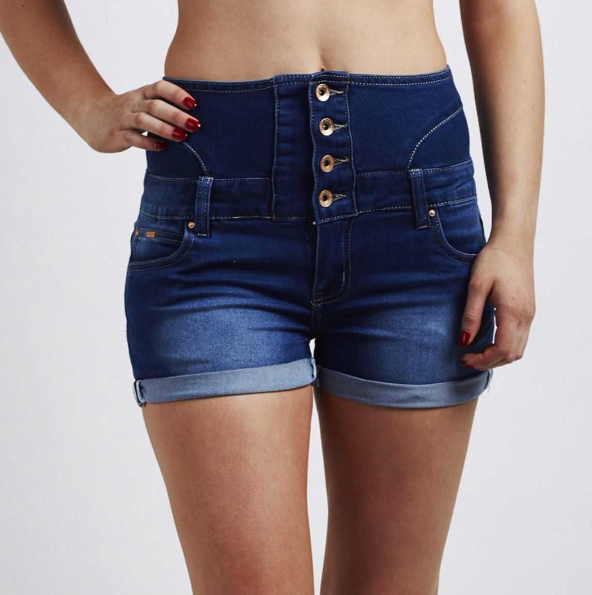 - Вид с завышенной талией – невысокие девушки, всегда хотят казаться выше, чем есть на самом деле. Физический рост можно увеличить обувью, а визуальный – шортами с завышенной талией. Даже по фото женщины в модных высоких шортах кажутся длинноногими красотками. Кроме того, в таких шортах можно спрятать неровности фигуры.