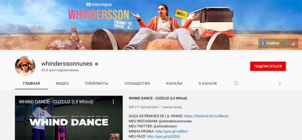 10. Whinderssonnunes — 43.4 million subscribers