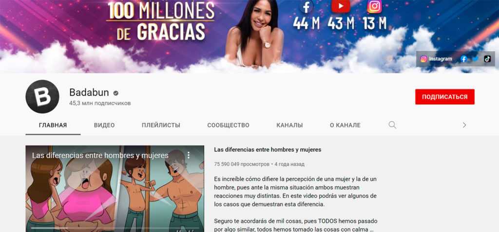 8. Badabun 45.3 миллионов подписчиков