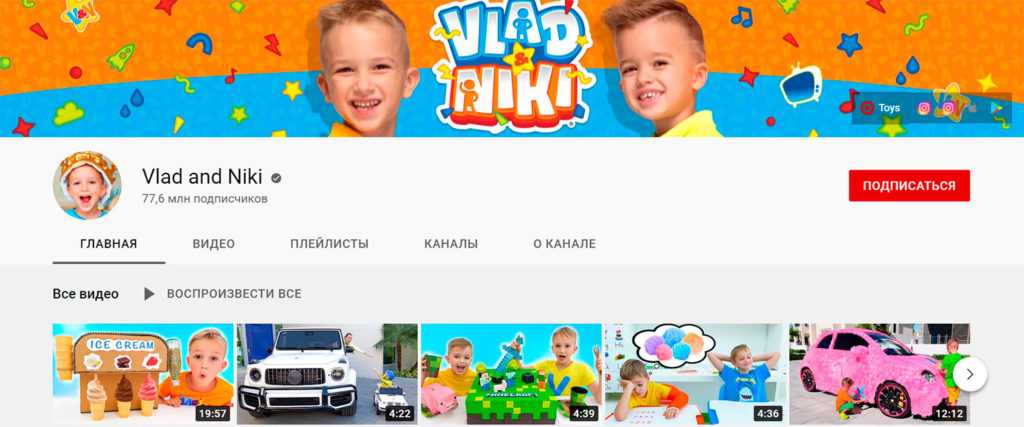 6. Влад и Ники 77.6 миллионов подписчиков