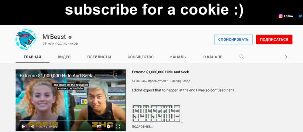 4. MrBeast 89 миллионов подписчиков