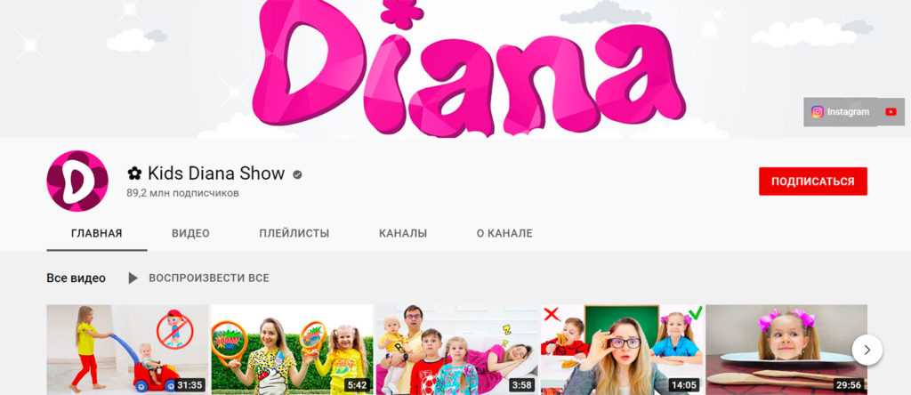 Детские каналы очень популярны на YouTube, поэтому у нас есть несколько таких в списке. Этот канал посвящен девочке из России по имени Диана, а контент посвящен ее жизни и тому, каково это-быть ребенком. Видео включают в себя распаковку игрушек, испытания, поездки и другие занятия, которыми занимаются дети.