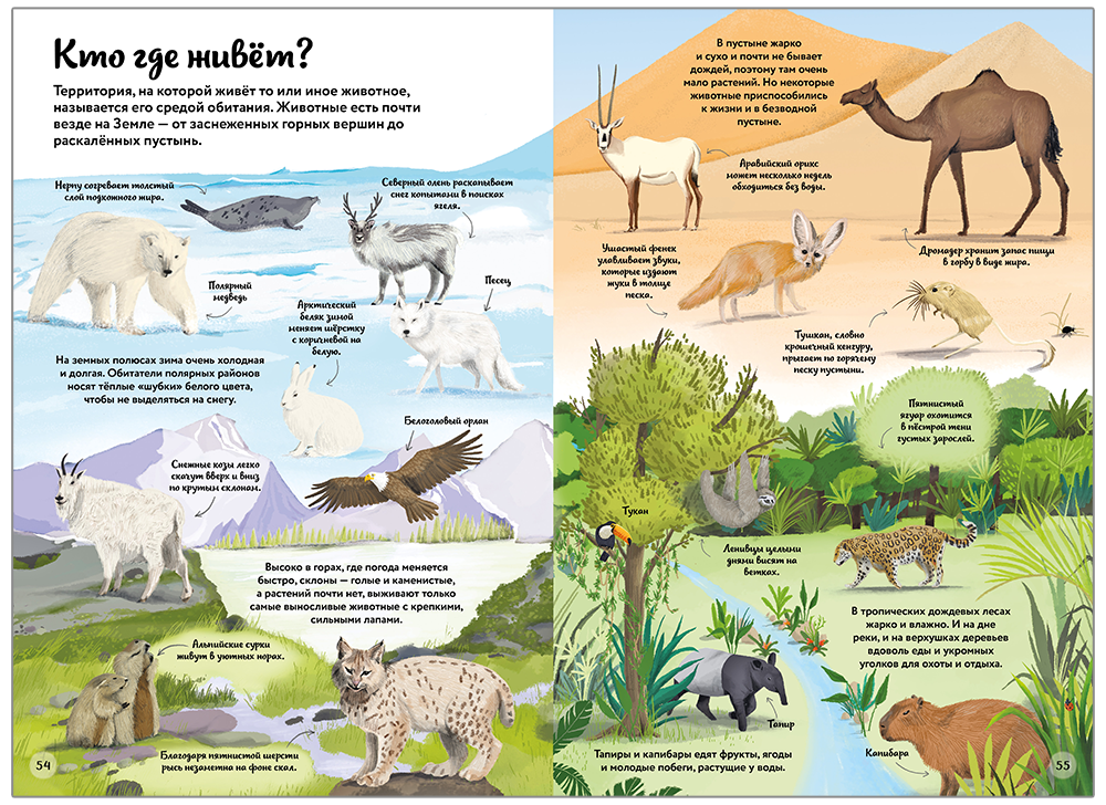 Прекрасные яркие иллюстрации и интересная информация о каждом животном сделают путешествие в мир дикой природы по-настоящему незабываемым!