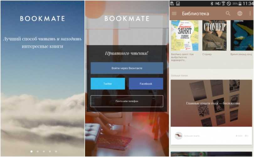 Приложение с рекламой и бесплатным доступом. Есть отдельные программы для чтения книг определенного жанра. В коллекции преимущественно бестселлеры. Стабильность работы сервиса не слишком высока.