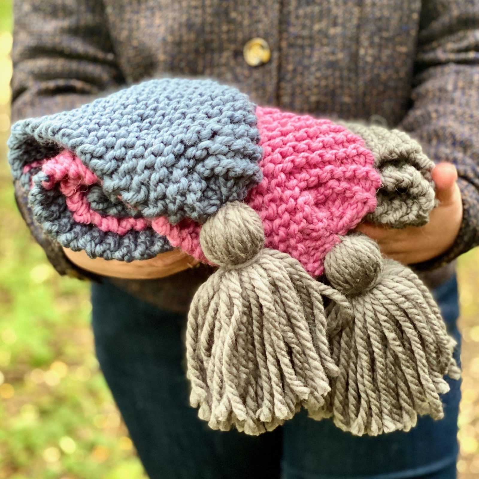 Те, кто хочет сделать изделие более изысканным и интересным, его край обвязывают крючком или делают бахрому, а на концы углов прикрепляют помпоны или кисточки. Вязка выбирается как простая, так и ажурная, но очень красиво смотрится бактус, связанный из меланжевой пряжи.
